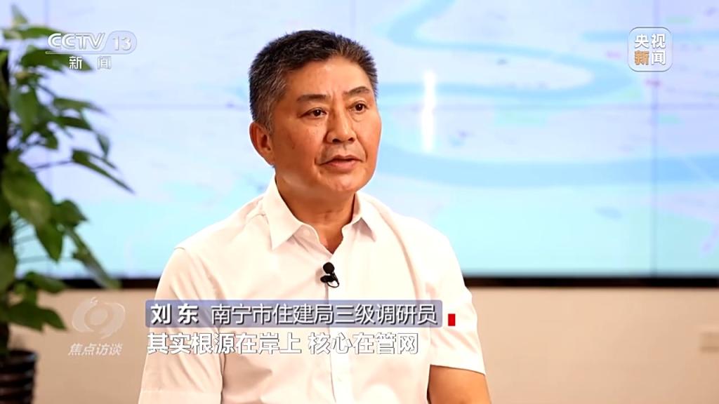 南宁市住建局三级调研员 刘东:水体黑臭问题在水里,其实根源在岸上,核心在管网。我们采取控源截污、内源治理、生态修复的方式,统筹左右岸、上下游、地表地下,综合施策。